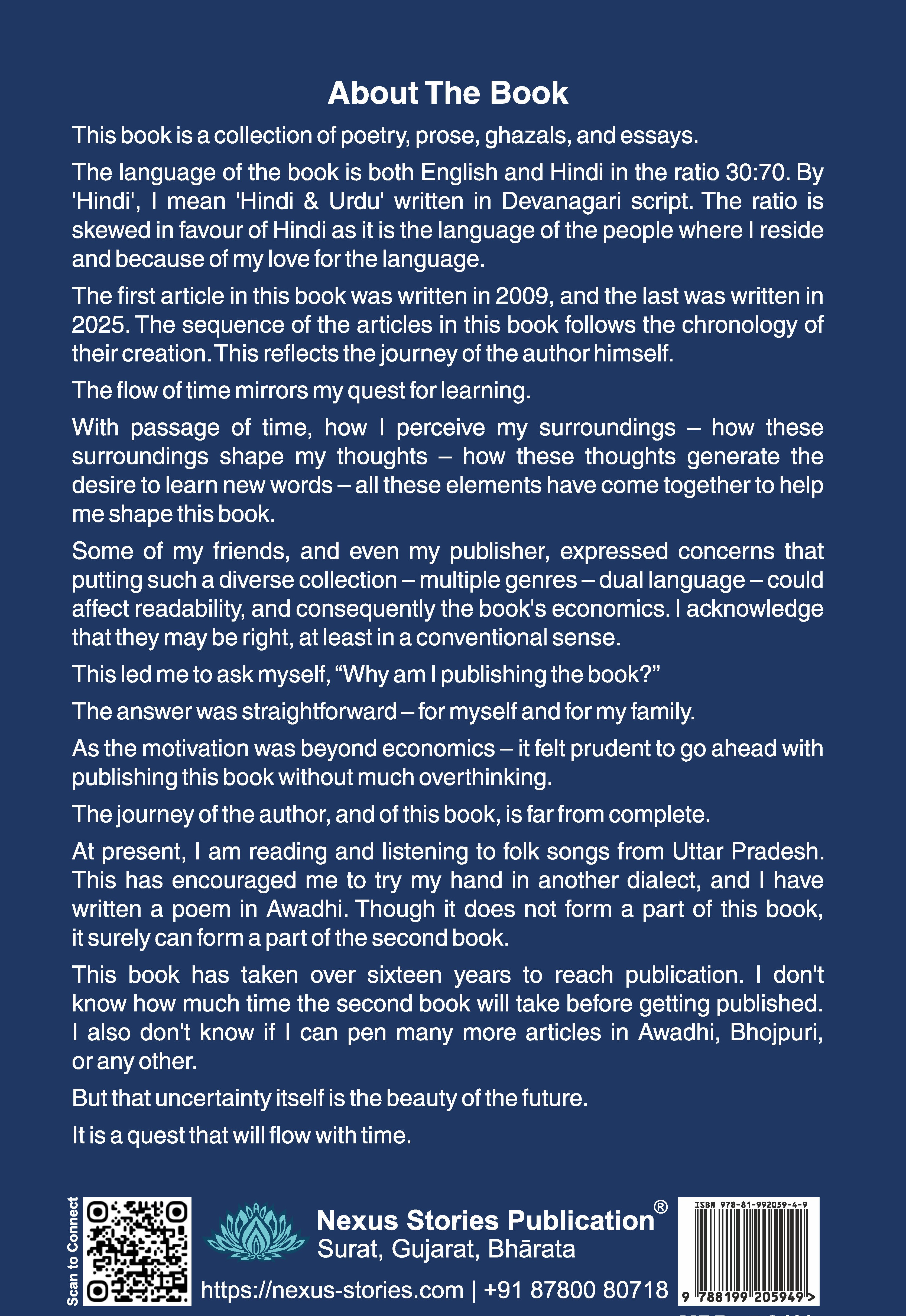 With passage of time, how I perceive my surroundings – how these surroundings shape my thoughts – how these thoughts generate the desire to learn new words – all these elements have come together to help me shape this book.