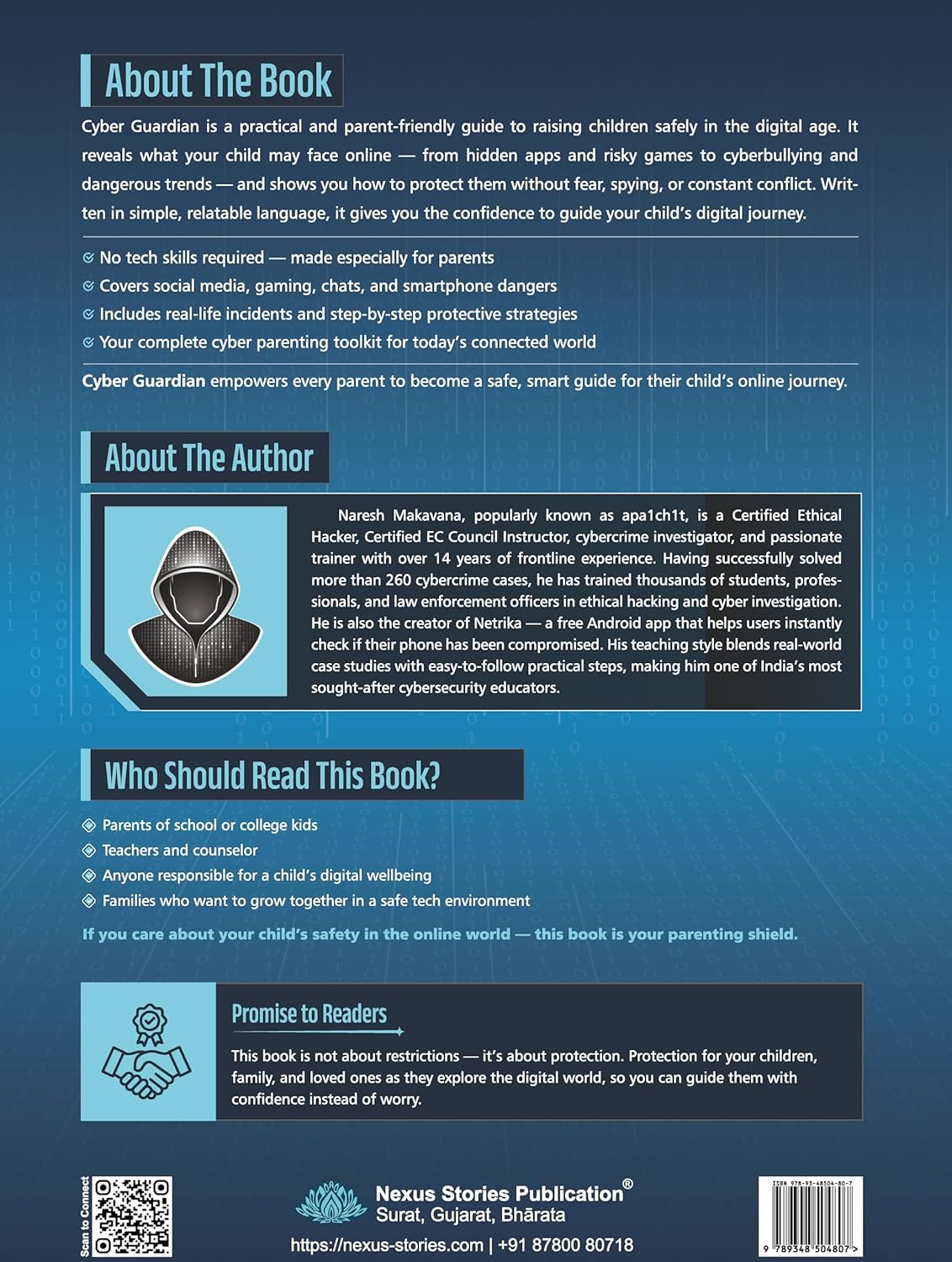 Today’s children grow up with phones, tablets, games, and the internet all around them. While technology makes life easier and more fun, it can also bring danger if we are not careful — especially for kids. There are people online who try to cheat, mislead, and even harm others. Children can become targets without even realizing it. That’s why I wrote this book — to help parents and guardians protect their children in the digital world. In very simple words, this book will explain: What kids do online — and what risks they face How to spot warning signs early The secret world of hidden apps, chats, and games How to talk to your child about online safety Easy steps to create a safe digital environment at home You don’t need to be a tech expert. This book is made especially for mothers, fathers, teachers, and caregivers — anyone who wants to be a cyber-safe parent. You’ll also find real examples, true incidents, and practical tips in every chapter. I want you to feel confident and prepared — not afraid of technology, but in control of it. In today’s world, being a Cyber Guardian is not optional — it’s essential. I hope this book becomes your trusted guide in keeping your child safe, aware, and strong online. Thank you for reading. – Author