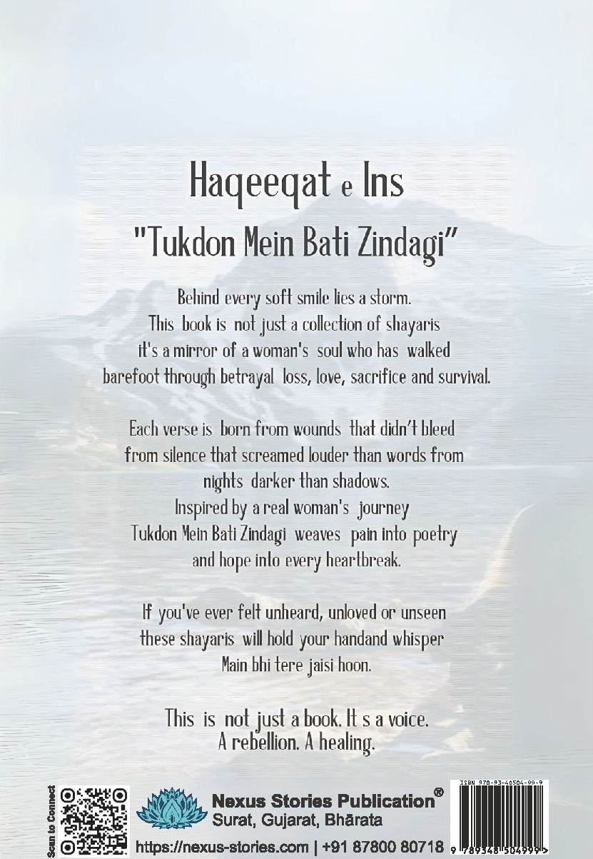 Life is a journey of emotions, struggles, and unforgettable bonds—and this book captures it all. From the challenges of existence in Haalaat-e-Zindagi to the warmth of companionship in Safar-e-Dosti, every page reflects heartfelt experiences. The raw truths of Khud-Garzi and the tender depth of Sauda-e-Mohabbat remind us of the beauty and pain love brings. With Ishq-e-Sukoon, one discovers peace within love, while Zindagi ka Dusra Safaah opens doors to new beginnings. Written with honesty and emotion, this book is a soulful collection that mirrors the essence of human life, love, and the ever-changing chapters of destiny.