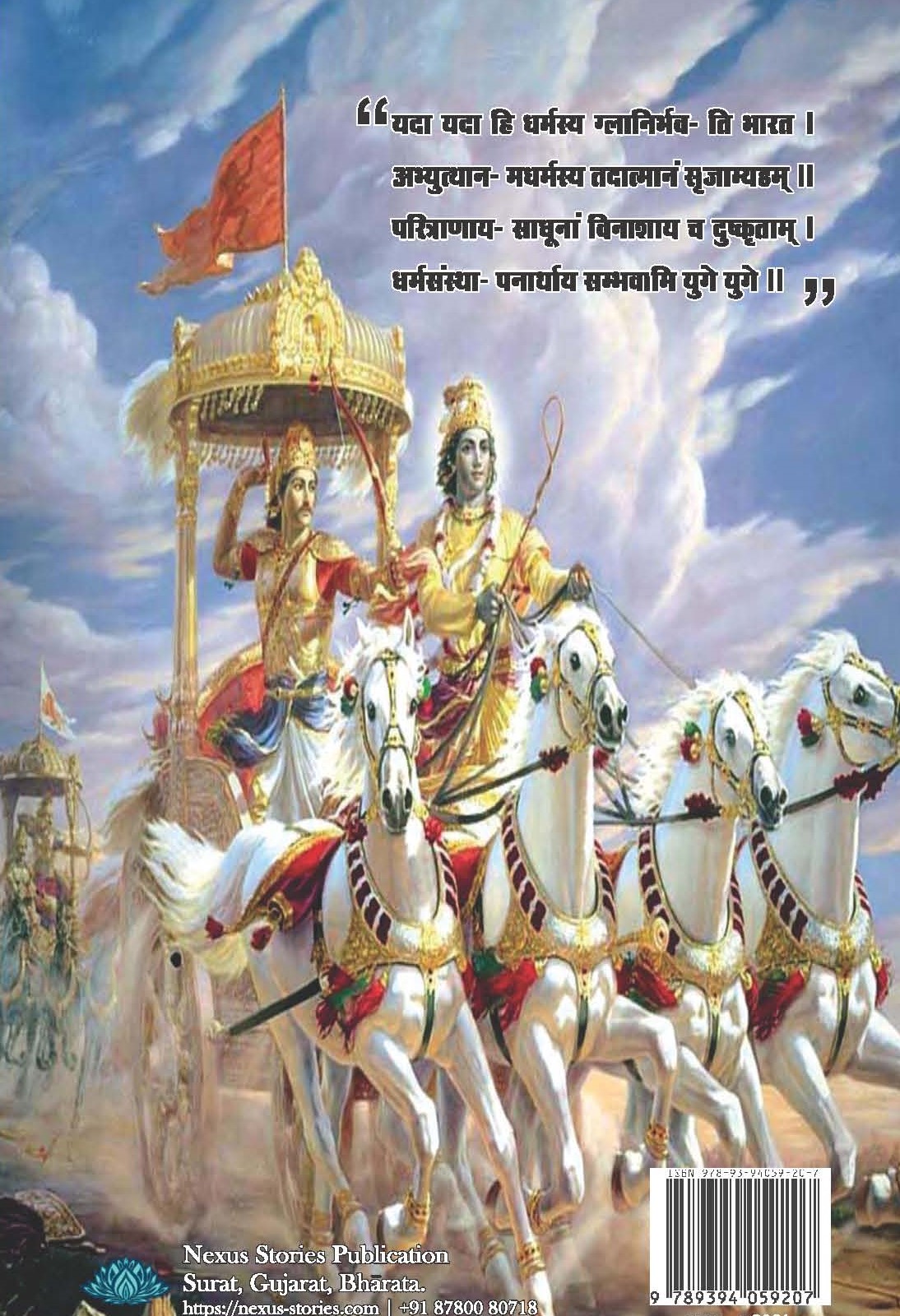 Karmanye Vadhikaraste Ma Phaleshou Kada Chana Ma Karma Phala Hetur Bhurmatey Sangostva Akarmani कर्मण्येवाधिकारस्ते मा फलेषु कदाचन । मा कर्मफलहेतुर्भुर्मा ते संगोऽस्त्वकर्मणि ॥ अर्थ: तेरा कर्म करने में ही अधिकार है, उसके फलों में कभी नहीं। इसलिए तू कर्मों के फल हेतु मत हो तथा तेरी कर्म न करने में भी आसक्ति न हो.