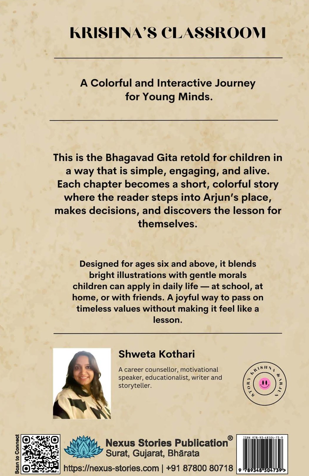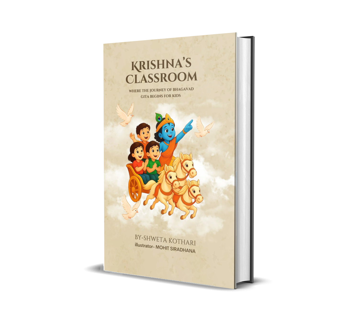 Long ago, on the battlefield of Kurukshetra, the great warrior Arjun was filled with doubt—should he fight or give up? Just then, his charioteer revealed himself as Lord Krishna and shared powerful wisdom. This conversation became the Bhagavad Gita, “The Song of God”—a guide full of life lessons about courage, kindness, focus, and inner peace. Kids, are you ready to join Arjun and Krishna on an exciting journey to discover the secrets of bravery, making the right choices, and staying calm in tough times? Let’s turn the page and begin this magical adventure!