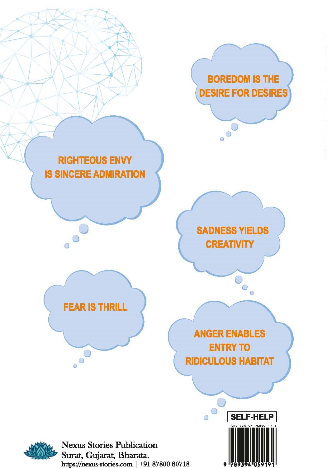 This book is intended to help you with emotions. Negative emotions. “Help?” We all have an evolutionary bias to use emotions like anger, sadness, fear, envy, jealousy, and Bordome in a stereotypical way. While angry, shout. While sad, cry. While scared, panic. While envious, hate. While bored, scroll social media…and so on. Stop! While angry, think. While sad, create. While scared, prepare with a thrill. While envious, admire. While bored, innovate… How? In accordance with this scheme, people have benefited in the past. Anger created potato- chips. Sadness led to the greatest artworks of history. Fear led to backups, enhancing the odds of success. Envy can lead to admiration and catching valuable qualities. Boredom led to the greatest work of fiction, “Harry Potter”. To know how you’ve gotta read the book.