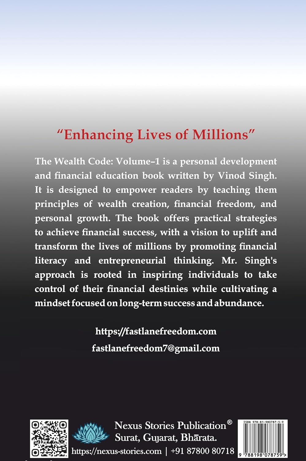 “Enhancing Lives of Millions” The Wealth Code: Volume 1 is a personal development and financial education book written by Vinod Singh. It is designed to empower readers by teaching them principles of wealth creation, financial freedom, and personal growth. The book offers practical strategies to achieve financial success, with a vision to uplift and transform the lives of millions by promoting financial literacy and entrepreneurial thinking. Singh’s approach is rooted in inspiring individuals to take control of their financial destinies while cultivating a mindset focused on long-term success and abundance.